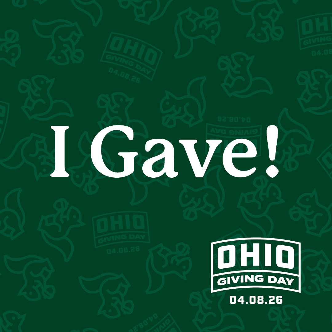 - OHIO Giving Day 2026 is almost here! Save the date for April 8 or make an early gift of $40 or more to the fund of your choice and choose from a retro Front Room Mug, a deck of cards, a 1972 Folk Festival Poster, or an OHIO Notebook as a thanks for your gift. Visit givingday.ohio.edu and use hashtag #OHIOGivingDay